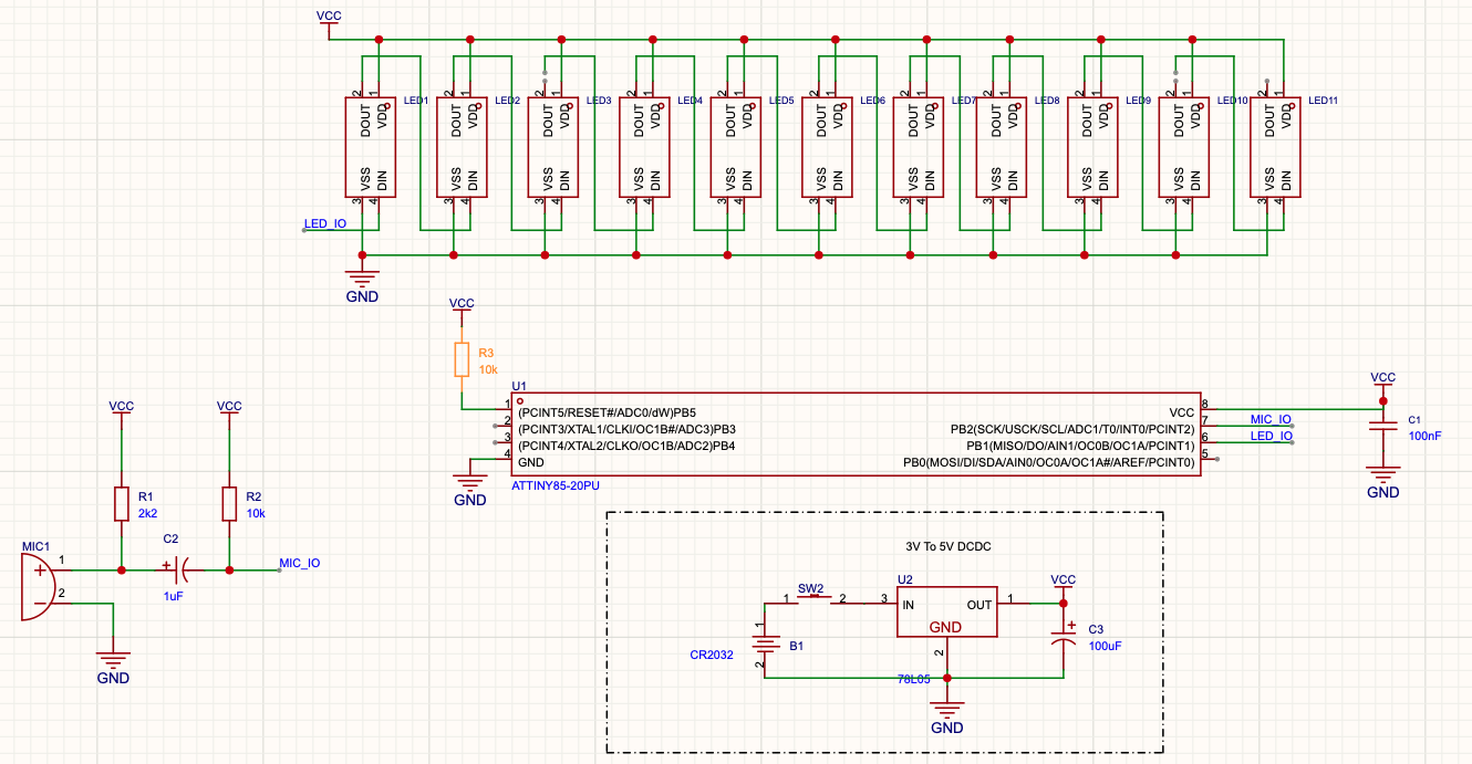 | 2、WS2812B焕彩灯珠 | x12(用10个) |